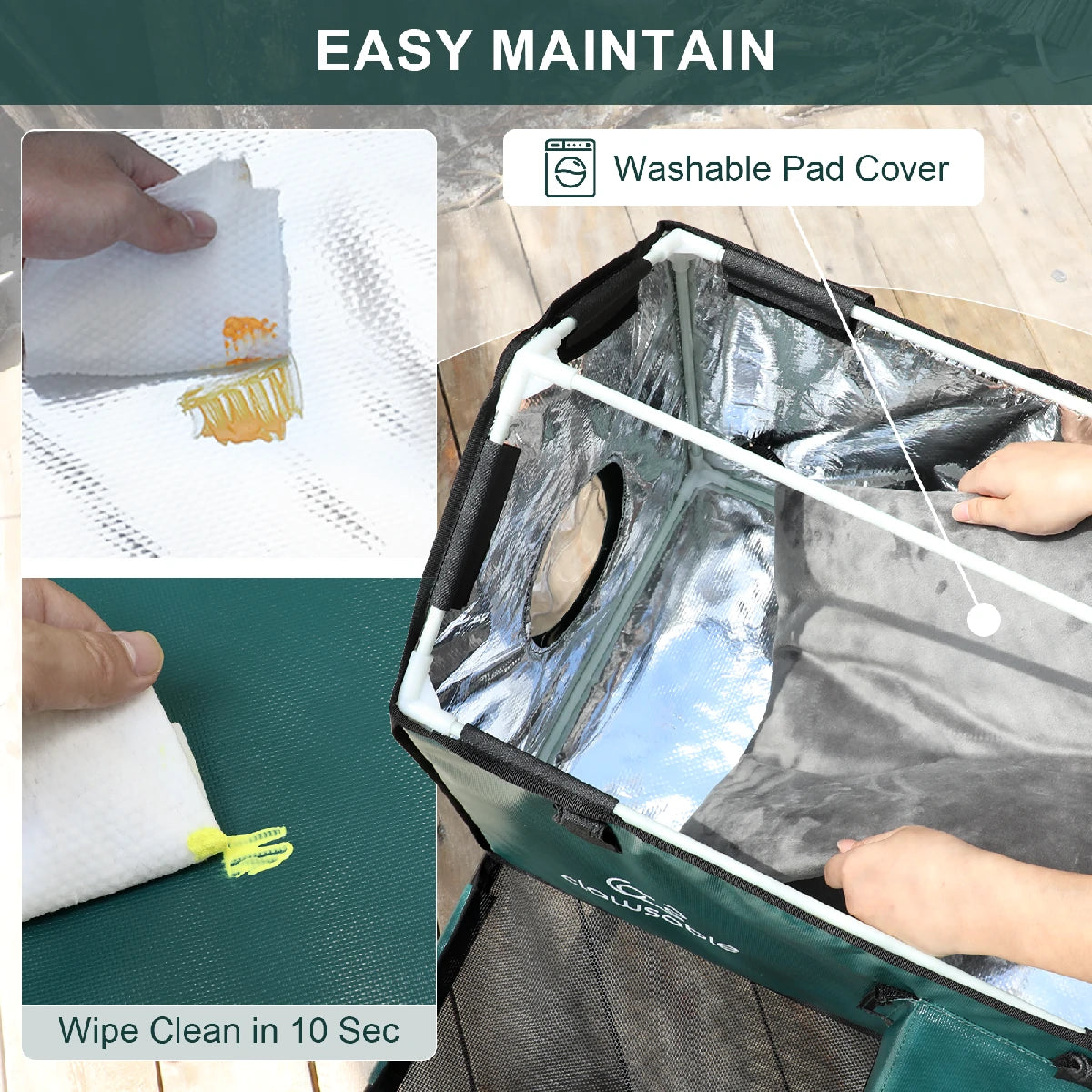 Outdoor cat house with waterproof rain cover and windproof eave, featuring a safe escape door for cats to stay dry and protected in the rain.